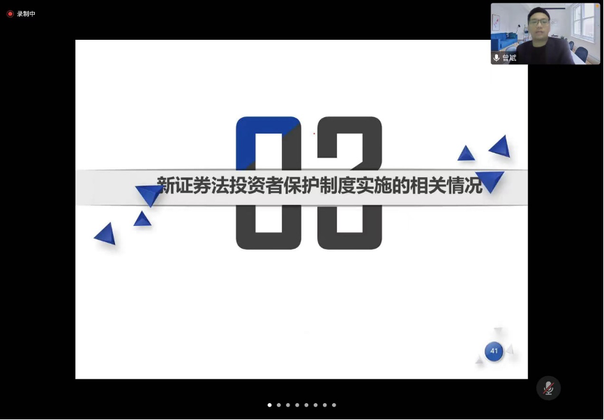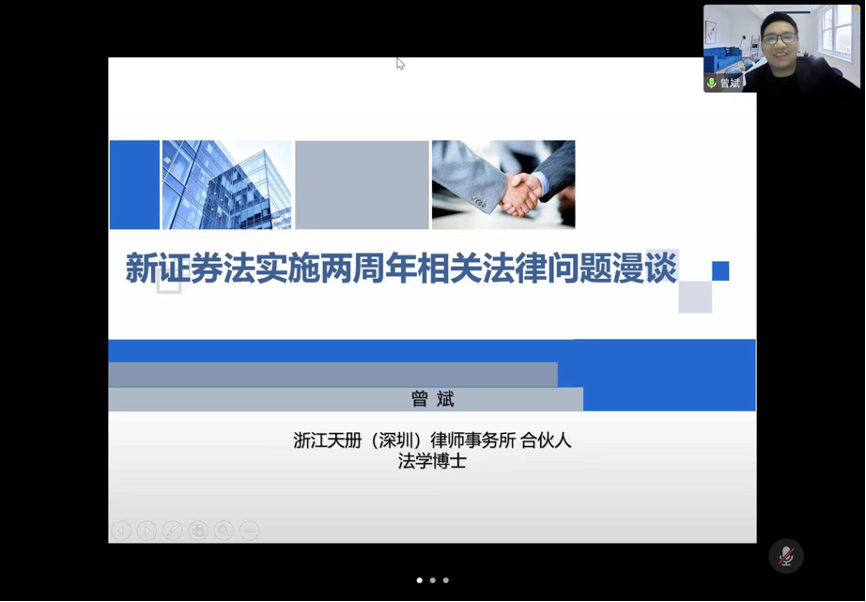 讲座伊始,曾斌律师抛出了几个引发同学们兴趣与思考的问题:证券发行的注册制落实得怎么样?注册制后A股市场产生怎样的变化?注册制下有哪些问题值得我们反思?之后曾斌律师通过介绍新证券法实施两周年的概况、新证券法实施对上市公司影响以及新证券法投资者保护制度实施的相关情况,对新证券法实施两周年相关法律问题进行了阐述和探讨。